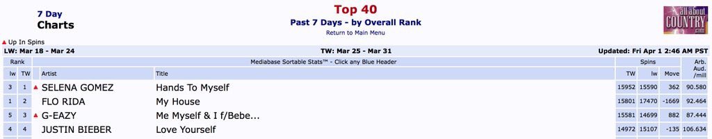 Nas rádios pop, Selena conquistou mais um #1 para sua carreira e para o disco com o terceiro single do seu segundo álbum solo, se consagrando assim como uma das cantoras femininas que mais emplacaram nas estações do segmento desta década.